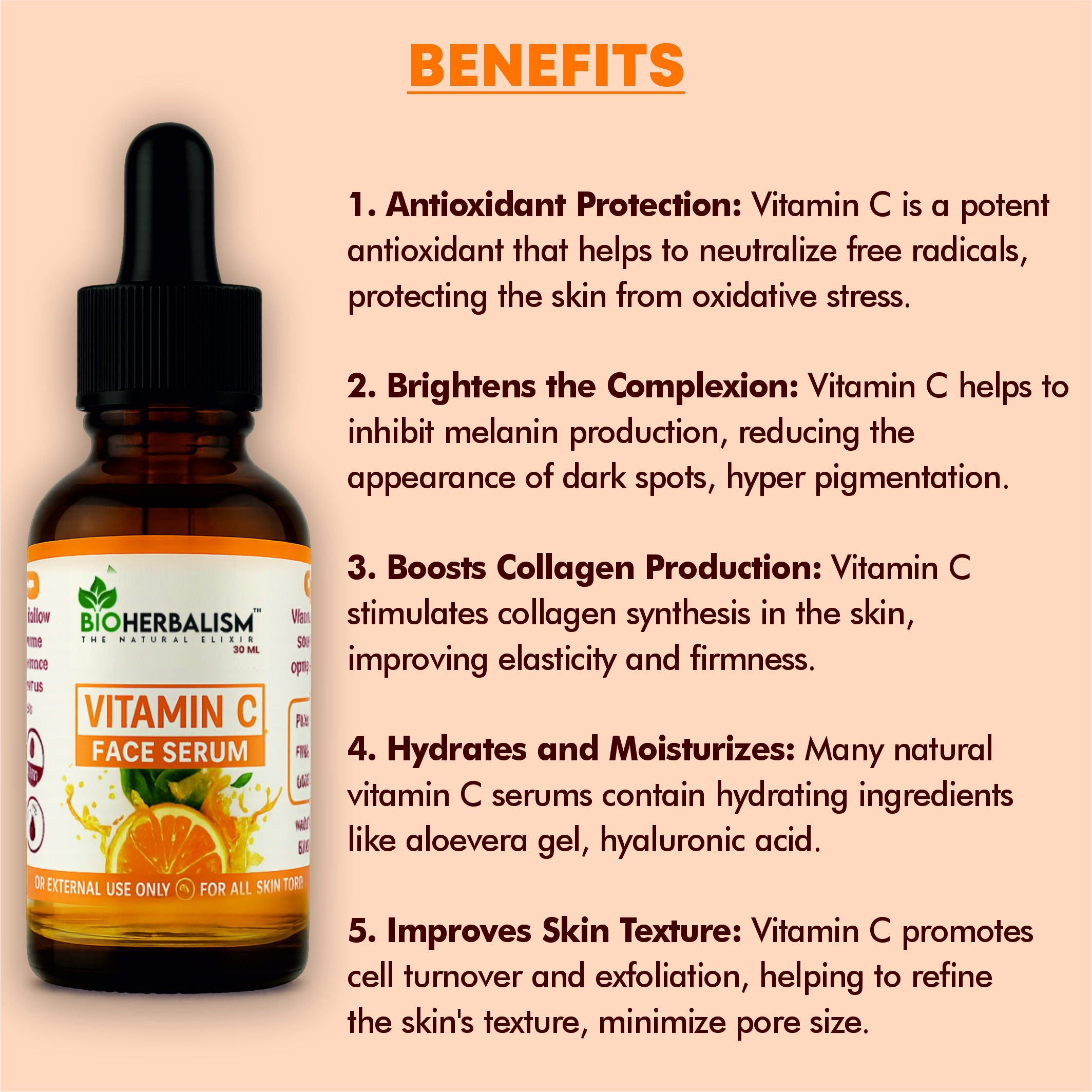 - Promotes Overall Skin Health: Regular use of a natural vitamin C face serum can help to promote overall skin health by providing essential nutrients, hydration, and antioxidant protection, resulting in a healthier and more vibrant complexion.